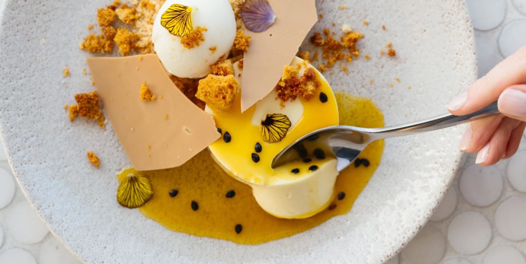 Banoffe bombe Alaska / 19 biscuit base, banana & toffee ice cream, dulce de leche, toasted meringue flambe +2 (dinner…
